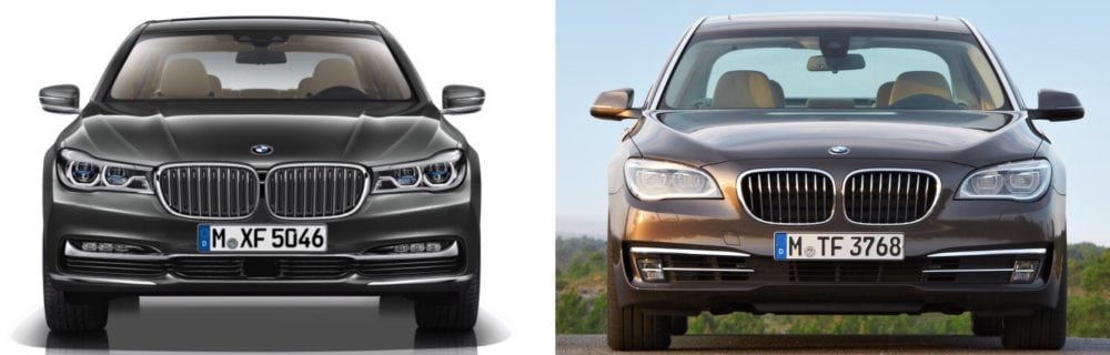 Большие решетки радиатора, демонстрируют нам дух власти и богатства, в то время как Изгиб Хофмейстера выделяется как никогда ранее. (Изги́б Хофма́йстера, от нем. Hofmeister-Knick, англ. Hofmeister kink — элемент экстерьера автомобилей BMW, который остаётся неизменным с 1961 года. Это характерный изгиб задней стойки кузова.). Капот автомобиля стал ниже и компактнее, что также придает новой семерке более агрессивный и спортивный вид. Свежести добавляет, и полоса на боковой части автомобиля, которая проходит в нижней части дверей и продолжается на заднем крыле автомобиля. Она может быть хромированная или черная.