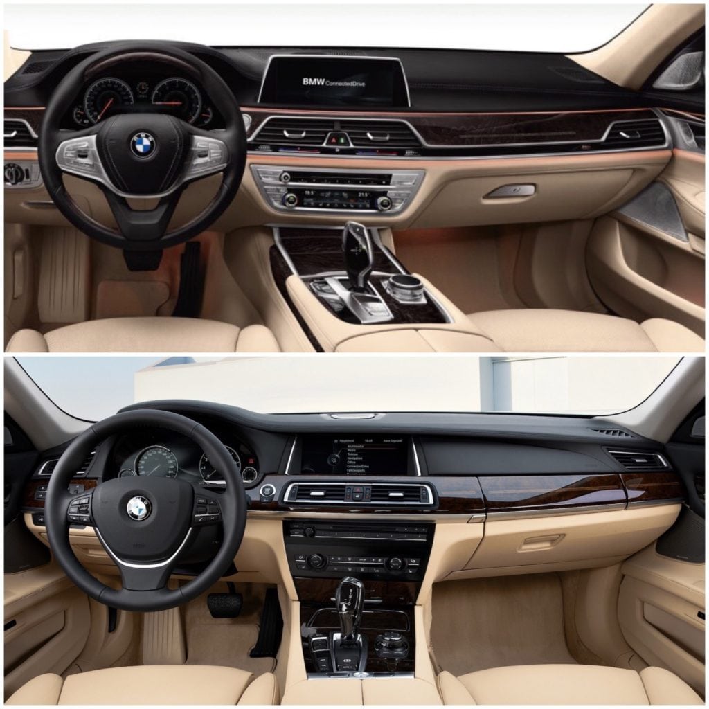 Интерьер выглядит знакомо, но и он претерпел значительные изменения. Самое заметное изменение – новый, огромный дисплей мультимедийной системы. С приятным массивом кожи, дерева и алюминия, интерьер новой семерки вызывает яркие и легкие ощущения комфорта в нем. Автомобиль снабжен новой системой IDrive версии 5.0, управление которой осуществляется как через сенсор, так и при помощи жестов. На наш взгляд BMW удалось уйти на несколько лет вперед, в сравнении с F01.