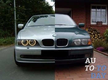 - В основном изменения касаются передней части машины. При тюнинге меняется оптика, производится ее тонировка или подведение нестандартных вариантов подсветки. При замене оптики фэйслифтинг предполагает установку галогеновых или ксеноновых фар, противотуманных элементов.