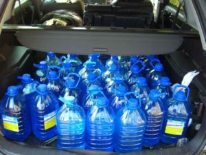 Для какого бы времени года ни готовилась самоделка, она обязательно должна быть основана на дистиллированной воде. Добавление обычной жидкости из-под крана, которая содержит примеси и мелкие частицы, приведет к тому, что форсунки будут забиваться. Вся система изнутри покроется известковым налетом, так что распылитель однажды совсем перестанет работать.